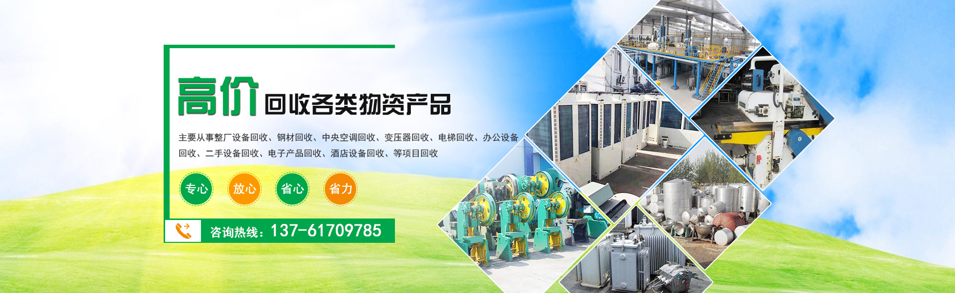 主要從(cóng)事整廠設備回(huí)收、鋼材回收、中央(yāng)空(kōng)調回收、變壓器回收、電梯回收、辦(bàn)公設備回收、二手設備回收等項目回收。