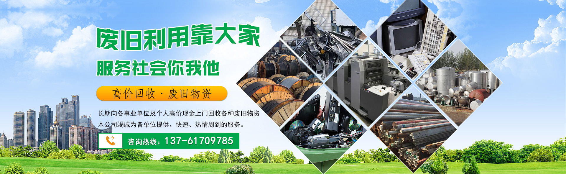 本公司收購品種齊(qí)全,長期向各事業(yè)單位及個人高價現金上門回收(shōu)各種廢舊物資。本公司竭誠為(wéi)各單(dān)位提供、快速、熱情周(zhōu)到的服(fú)務。